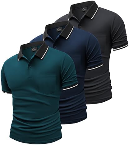 GEEK LIGHTING Men’s Athletic Polo Shirts with Pocket (3-Pack)